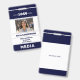 Personalized identification ID card for media press event pass - elegant dark navy blue and white badge with your custom company logo, photo, name, title, and other details - if needed. +++++++++++++ Easy to personalize with your info on both sides! +++++++++++++++ Suitable for corporate journalists, photographers, field reporters, other media employees, managers, executives, and special events staff. +++++++++ Please note that the background color, fonts, and sizes of text can be changed. You can upload any other details on the backside.