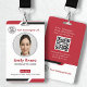 This striking red employee ID badge is designed for professional corporate environments. Featuring a prominent QR code, it offers a modern and efficient way to store and access employee information or website links. The bold red color adds a touch of authority and visibility, while the customizable fields allow for essential details like ID number, phone, and email. A dedicated space for your company logo and name ensures brand consistency, making it an ideal identification solution for any organization seeking a sleek and functional access pass. The additional text area below the QR code provides flexibility for website URLs, office addresses, or other critical information, enhancing its utility. This badge is perfect for businesses looking to streamline their identification processes with a touch of modern flair and essential company branding.