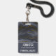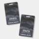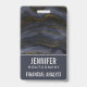 Placa de identificação com uma bela imagem de pedra de ágata escura abstrata. As cores se movem em ondas. As cores principais são preto, cinza-azulado com uma fita dourada falsa que percorre o design. Moderno e atual.