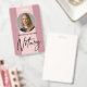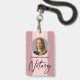 Crachá de foto de notário moderno e sofisticado com foto única, detalhes de contato em um fundo rosa dourado e rosa bege. Personalize ainda mais com seus detalhes e logotipo.