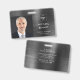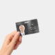 Crachá Personalizado Moderno Metálico Preto de Identificação de Empresa. Personalize este crachá de identificação corporativa com o nome do seu funcionário, cargo, foto e logotipo da sua empresa na parte frontal e o texto de informação personalizado no verso. A foto do funcionário funciona melhor no formato quadrado. Seu logotipo funciona melhor como um png em formato quadrado com fundo transparente. O logotipo substituto que você vê no crachá será completamente substituído pelo design do seu próprio logotipo.