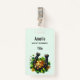Nome crachá com uma Rua. Imagem temática do Dia de Patrick. Uma ferradura preta e dourada sentada numa cama de trevo verde com moedas de ouro brilhante.