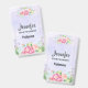 Crachá com um bonito design de aquarela. Flores rosa dispostas em um belo buquê.
