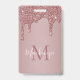 Crachá de Nome com Monograma Brilhante em Rosa Dourado com gotejamento de glitter rosa dourado/rosa em um fundo chique com seu monograma personalizado e nome. Ótimo para qualquer pessoa que ama o estilo de vida glamoroso de luxo. Perfeito para seu visual de luxo! Você está nadando em luxo - mostre isso! Entre em contato conosco em cedarandstring@gmail.com se precisar de ajuda com o design ou produtos correspondentes.