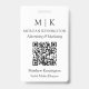 Crachá de nome minimalista moderno. Preto e branco ou escolha as cores personalizadas. Adicione seu site ou endereço da Web de mídia social ao Código de verificação QR. Perfeito para pequenas empresas, marcas de empresas, independentes, salões de beleza, spas, caterárias, padarias, cafés, restaurantes e muito mais. Fácil de personalizar com suas iniciais de monograma, nome e informações de empresa, cargo, slogan, foto de funcionário ou até adicionar seu logotipo ou design de marca pessoal.