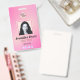 Nome de etiqueta personalizado cor-de-rosa Código QRcode Este design apresenta uma fonte de estilo de script de caligrafia de assinatura elegante em relação a um belo fundo cor-de-rosa brilhante iridescente moderno. Perfeito para salão de beleza, cabeleireiro, maquiador, técnico de pregos, técnico de lash ou cosmetólogo.