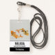 Crachá de nomes com uma ilustração de um par de peixes koi dourados nadando juntos.