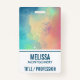 Nomeie o crachá com um design legal e abstrato. As aquarelas se misturam e se misturam para criar a ilusão de uma imagem espacial. Verde com espirais de púrpura, amarela e vermelho-claro misturados com uma mistura de pontos brancos e estrelas. Uma legal criação de triquetes.