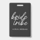 Simples, moderno e elegante citação "Bride Tribe" com fonte script em preto e branco em um estilo moderno. Os nomes podem ser personalizados com os nomes das suas damas de honra. Você pode usá-lo para a noiva, damas de honra, meninas de flores ou a mãe da noiva. Os acessórios coordenados para a equipe da noiva funcionam bem para propostas de damas de honra, chá de noiva, despedida de solteira, manhã do casamento ou brunch do dia seguinte ao casamento. Faz um presente personalizado atencioso para as damas de honra.