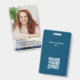 Um simples design apresenta um crachá de fotos de funcionários com nome e título, perfeito para a empresa, segurança personalizada, perfeito para o funcionarios de profissionais, com um código de barras QR, um material de escritório padrão, com um evento simples minimalista, básico e de exibição comercial.
