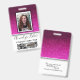 O rosa quente e a brilha preta brilham deliciosamente atrás de um modelo de foto com quadro preto e branco. Atualizar facilmente o nome e o título profissional de cada crachá de funcionário personalizado. Há também espaço para o logotipo de uma empresa — excluir para deixar o vazio. A parte traseira apresenta mais brilho inverso e uma modelo de imagem perfeita para códigos de bar dos funcionários. Disponível em muitos outros estilos e cores.