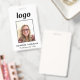 Crachá de fotos simples e moderno para identificação de negócios corporativo. Espaço para o logotipo da sua própria empresa, fotos e texto personalizado na frente e atrás, que podem ser todos alterados ou excluídos de acordo com os requisitos da sua própria empresa. Design minimalista e inflexível.