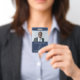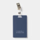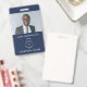 Nome de identificação de foto de funcionário simples Marinho azul do logotipo. Um crachá de identificação de foto totalmente personalizável, que é fácil de personalizar com sua foto, logotipo e texto. Troque sua foto (de orientação de paisagem) pela imagem de exemplo e o logotipo da empresa e personalize facilmente o texto para seus próprios detalhes. Você também pode adicionar seu endereço de devolução na parte traseira caso o cartão seja perdido ou excluir este texto se desejar. Os estilos de fonte e a cor também podem ser alterados através da opção Personalizar Mais, assim como da cor de fundo.