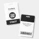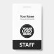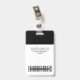 Personalize facilmente este Crachá de nome profissional administrativo personalizado sem fotos, com o Código de Bar de Digitalização e o logotipo de grande empresa. Um simples design de negócios em cores preto e branco totalmente personalizável em tamanhos frontais e traseiros, fontes básicas e modernas sans-serif e uma aparência profissional e clara, perfeita para funcionários de pequenas empresas, patrão, convidados. Estes crachás de identificação de negócios estão disponíveis com ferro-velho, clipe metálico ou com retratável. Não há ordem mínima, mas economize dinheiro e desfrute dos descontos Zazzle por várias ordens!