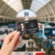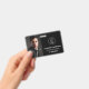 Um simples crachá de identificação de foto de logotipo personalizado de empresa preto e branco, minimalista, para funcionarios em uma empresa profissional. Substitua as imagens por uma foto quadrada do seu logotipo e uma foto vertical do funcionário. Você pode alterar a fonte, a cor da fonte, o tamanho da fonte, o espaçamento da letra, a cor do plano de fundo e reposicionar o texto usando a Ferramenta Design. Você também pode excluir as informações que não deseja. O simples design corporativo elegante e moderno é seu para personalizar como quiser.