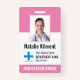 Crachá preto-e-branco com nome de foto do funcionário do hospital Código do Bar preto-e-branco rosa. Para mais personalização, clique no botão "Personalizar" e use nossa ferramenta de design para modificar este modelo.