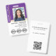 Professional Notary Public ID badge with a profile photo, and three accreditation symbols or a logo. This editable template can be personalized with your name, credentials, and commission, along with certification marks or your company logo for branding. Additional information and a QR code are included on the back. This classic design blends both traditional and contemporary features, creating an elegant yet friendly appearance. It offers fully customizable text to fit your business brand. Perfect for a Notary Public, Loan Signing Agent, Certified Notary Trust Delivery Agent (CNTDA), Mobile Notary, Apostille or other legal professional. Printed colors: purple, white and gold color. Shop the online collection for more popular product ideas and supplies designed for notaries!