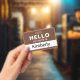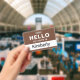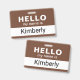 Personalize facilmente este crachá básico personalizado de "Olá, meu nome é" da empresa. Disponível com diferentes cores de fundo e acessórios. Sem quantidade mínima de pedido.