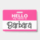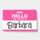 Versão cor-de-rosa e branca para um acessório de fantasia de Halloween bonitinho. Olá, Meu Nome É - Barbara, baby, bebês, bar um design de negócios feminino que destaca seu nome favorito. O bem conhecido - Olá, Meu Nome está - olhar que está por aí há anos está agora disponível para ser usado em outros itens além dos rótulos e adesivos. Um olhar clássico que também pode ser usado como um favor de festa engraçado.