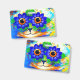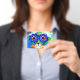 Distintivo com a pintura de animal de Louis Wain Olhos de Flor de Gato (1860-1939). Um gato arco-íris sorri amplamente. Flores azuis cobrem seus olhos. Um presente maravilhoso para amantes de gatos e arte inglesa.