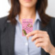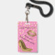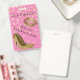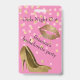 Crachá de festa de solteira giro-chic feito em tons de rosa, com gráficos de ouro e rosa claro confetti, impressão de lábio ouro e ouro em saltos altos. Personalize o texto para a comemoração noturna de sua garota.