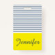 Padrão de listras branco, azul e amarelo moderno com nome personalizado
