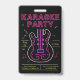 Sinal de karaokê-rosa-neon e guitarra com notas de música coloridas. Isso seria excelente para uma festa de aniversário.