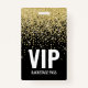 Pass. VIP Dourado preto com brilho com Crachá QR Code ID. Ajuste o tamanho da fonte, se necessário. Todos os detalhes são personalizáveis.