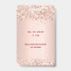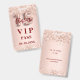 Um crachá VIP moderno, na moda e glamouroso para uma Quinceañera, festa de aniversário 15. Um fundo rosa dourado decorado com confete. Com o texto: VIP. Personalize e adicione o nome e os detalhes da festa.
