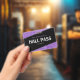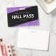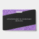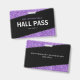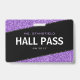 Passe de sala de professores elegantes, negros e roxos. Layout horizontal. Personalize-o adicionando seu nome, número da sala de aula e nome da escola. Muito feminina, menina, design de vidro. Excelente para mulheres instrutoras do ensino fundamental ou médio.