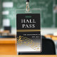 Ombre White e Black School Hall passam crachá para professores de música. As notas de música ouro legal escalam o design com texto branco personalizável. Layout vertical. Personalize-o adicionando seu número de sobrenome e sala de aula. Excelente de volta à escola para professores do ensino fundamental.