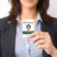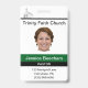 Crachá personalizado de uma Pastora feminina, embora possa ser personalizado para qualquer funcionário da igreja. Cada parte deste crachá de ID pode ser modificada de acordo com as suas necessidades. O nome da igreja, a fotografia do funcionarios, o título da pessoa e o endereço e o número de telefone podem ser personalizados. Há também um número de ID no verso que pode ser modificado ou excluído.