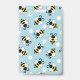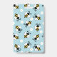 Padrão sem costura com pequenas abelhas voadoras bonitinhas e flores margaridas brancas decoração sobre fundo azul claro
