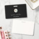 Crachá de negócios elegante e mínimo para um joalheiro, um designer de joalharia ou uma joalheria com uma pérola brilhante solteiro contra preto.