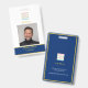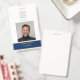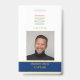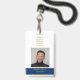Um crachá de identificação personalizado com uma foto pessoal e um espaço para colocar seu logotipo.