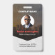 Cartão de Identificação com um estilo abstrato na frente com cores temáticas profissionais e um verso com um fundo elegante e código de barras. Perfeito para empresas que buscam criar cartões de identificação elegantes para seus funcionários.