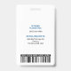 Este moderno crachá de identificação apresenta uma bela malha azul, foto, logotipo e código de barras.