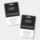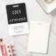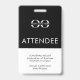 Aumente sua experiência de conferência com este crachá personalizável de nome de participante. Perfeito para associações comerciais, este crachá oferece amplo espaço para o nome do seu participante, o nome da associação, o título da conferência e a data ou texto de sua escolha. O design preto e branco é elegante e moderno, com um logotipo personalizável no topo. Faça uma impressão excelente com este crachá profissional e personalizado.