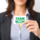 Placa de identificação personalizada para time verde. Ideal para equipes de escritório, eventos familiares, jogos divertidos ou para equipes esportivas. Personalize este design com o nome da sua equipe ou família e time ou lema e nome e seu papel no verso. Outras cores disponíveis. Ótimo para construção de equipe, eventos e presentes motivacionais para a equipe. Criado por www.mylittleeden.com no zazzle