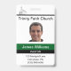 Crachá personalizado da igreja para um Pastor, embora possa ser personalizado para qualquer funcionário da igreja. Cada parte deste crachá de ID pode ser modificada de acordo com as suas necessidades. O nome da igreja, a fotografia do funcionarios, o título da pessoa e o endereço e o número de telefone podem ser personalizados. Há também um número de ID no verso que pode ser modificado ou excluído.
