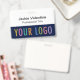 Personalize nosso crachá profissional de PVC com o logotipo da sua empresa, nome do funcionário, cargo ou outro texto personalizado. Disponível com cordão, clipe de metal ou carretel retrátil. Projetado em azul-marinho e outras cores com um design minimalista moderno pela MISOOK. Todas as cores são personalizáveis. As dimensões são 3,38 polegadas x 2,13 polegadas. Sem quantidade mínima de pedido e sem taxa de configuração.
