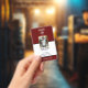 Faça uma declaração em negrito com este design de placa de ID minimalista. Apresentando um fundo Maroon limpo, este design permite que sua foto e logotipo tomem palco central. Perfeito para profissionais, estudantes ou qualquer pessoa que queira uma identidade moderna e sofisticada.