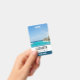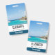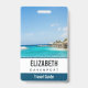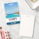 Crachá personalizado com uma bela foto com um resort de praia tropical. Bonito água azul e praia branca arenosa com aqueles cabanas que lhe dão uma vibração tranquila na ilha.