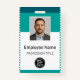This professional employee ID badge features a clean and modern design with teal and white stripes. It's perfect for any business looking to enhance security and identification. The layout allows for a photo, employee name, profession title, and company logo, ensuring all essential information is visible at a glance. The reverse side includes space for department information and contact details, making it easy to return if lost. Elevate your company's image with this sleek and functional identification solution.