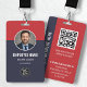 This modern and professional Navy Blue and Red Photo ID Badge is perfect for any corporate environment. Featuring a clean design with designated spaces for your photo, employee name, title, and ID number, it ensures easy identification and security. The reverse side includes a QR code for quick access to digital information and essential return instructions. Elevate your company's professional image with this sleek and functional ID badge, designed for efficiency and style.