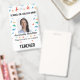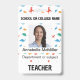 Um crachá divertido de identificação de foto de um professor para se identificar nas crianças da sala de aula será curioso sobre o crachá e o conteúdo. Há espaço para adicionar o nome da escola ou da faculdade, o nome do professor, o departamento ou assunto, a posição geral e a sua foto. Clique em "personalizar este modelo" para adicionar suas informações pessoais.