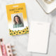 Crachá de identificação de girassol vertical personalizado com foto, nome, nota contra um gradiente branco e amarelo e com girassóis. Professor de jardim de infância com crachá de girassol.