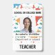 Um crachá divertido de identificação de foto de um professor para se identificar nas crianças da sala de aula será curioso sobre o crachá e o conteúdo. Há espaço para adicionar o nome da escola ou da faculdade, o nome do professor, o departamento ou assunto, a posição geral e a sua foto. Clique em "personalizar este modelo" para adicionar suas informações pessoais.