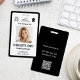Crie uma identidade profissional com este crachá de identificação personalizado elegante. Seu fundo branco limpo é emoldurado por uma borda preta moderna, apresentando tipografia preta clara e espaço para o logotipo da sua empresa e certificações. Este design minimalista fornece uma apresentação nítida e sofisticada para qualquer organização.