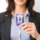 Represente seu negócio com estilo fornecendo ao seu pessoal crachás de identificação fotográficos modernos e profissionais. O logotipo, a foto, o código QR e toda a redação neste modelo são simples de personalizar. Para criar seu próprio código QR usando o gerador, basta digitar o URL do site no modelo. O design também apresenta um fundo degradê roxo com arcos curvos únicos, o logotipo da sua empresa, uma imagem quadrada e o nome e cargo do funcionário. É adequado como uma ferramenta de marketing promocional ou como um passe de acesso para um evento, como uma conferência, show, festival ou festa vip. Pode fornecer organização e segurança para os funcionários da empresa, ao mesmo tempo em que apresenta a marca corporativa com uma aparência elegante e clássica.